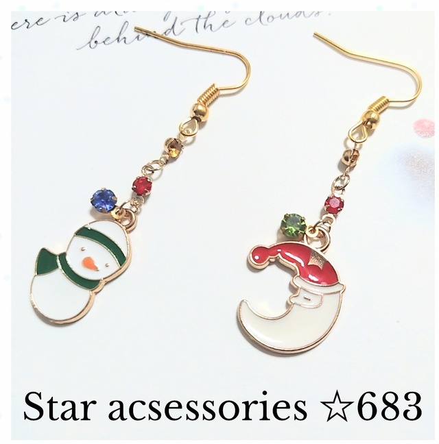 雪だるまとツリーのピアス No682