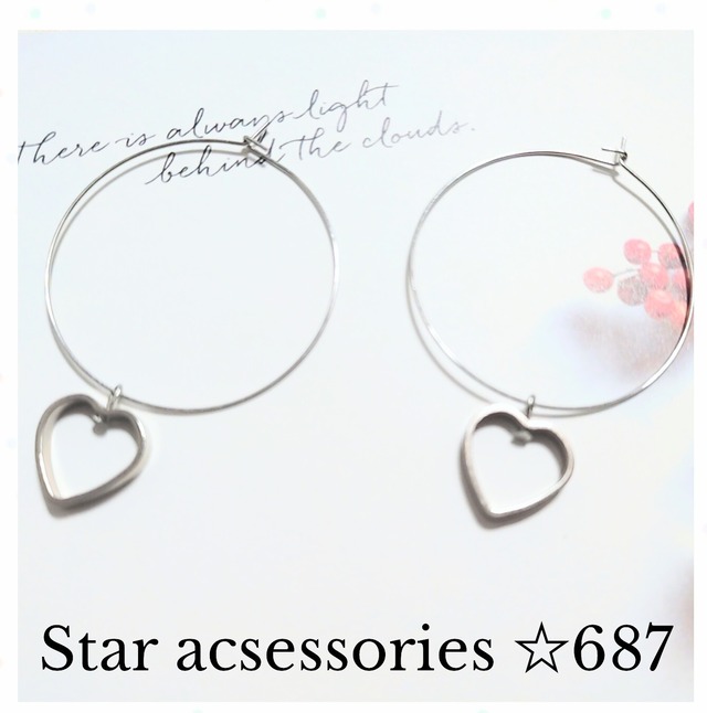 Star accessories ハート型フープピアス No687