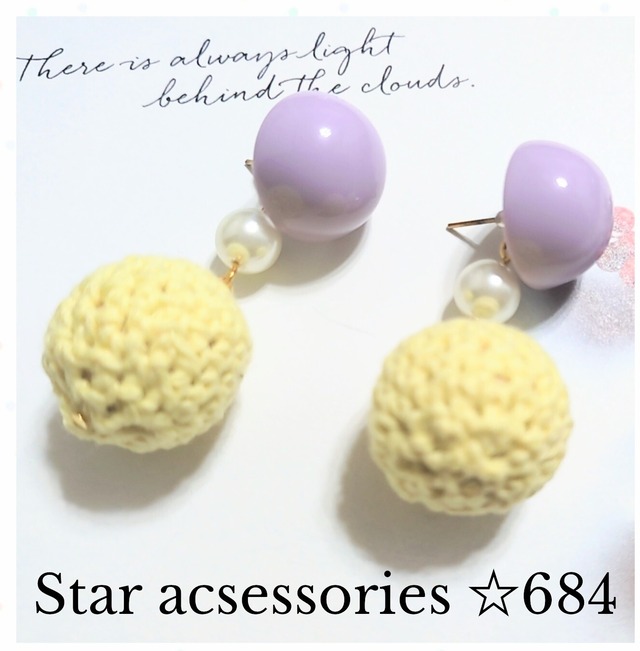 紫と黄色の編み物デザインのピアス。 - 色: 紫と黄色 - 素材: 編み物(イエロー)、プラスチック(紫)、パール - ブランド名: Star accessories - スタイル: カジュアル たくさんの商品の中からご覧いただきありがとうございます(^^) こちらはハンドメイドのピアス(イヤリング)です☆ミ 大きめで耳元で揺れる大人可愛いデザインです☆ミ パープルのまんまるパーツと黄色の編み物ぼんぼりがゆらゆら揺れて可愛いです☆ミ 取外しできてパープルだけでも楽しめる2WAYです◯ 大きさ約4.5cmです♪ 金具はお写真のものとなります。変更できない仕様ですのでご了承ください。 ⚠︎ハンドイドにご理解頂ける方のみお願い致します。 ⚠︎既製品と比較すると強度が劣ります。優しくお取り扱いくださりますようお願い申し上げます。 【配送について】 ラッピングしプチプチに包み普通郵便でお届けします。 よろしくお願いします。 他にもハンドメイドでアクセサリーを作成しています。ネックレス、ブレスレット、マスクチャーム、ストラップなどもあります。よろしければよろしくお願いします(^^) #ハンドメイドアクセサリー #ハンドメイドピアス #ハンドメイドイヤリング #ハンドメイド #手作り #世界にひとつだけ #大人可愛い #ゆらゆらピアス #編み物 #編み物ピアス #ぼんぼり #まんまる #パープル #イエロー #staraccessories タイプ...両耳用 種類...大ぶり