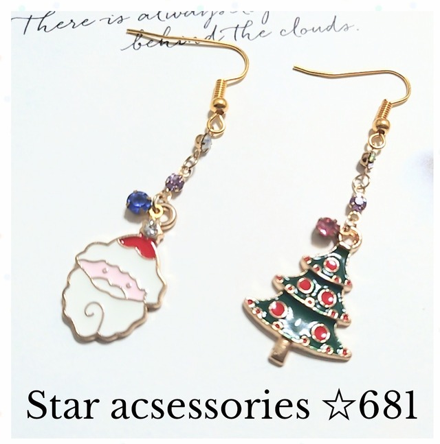 クリスマスピアス サンタとツリー No681