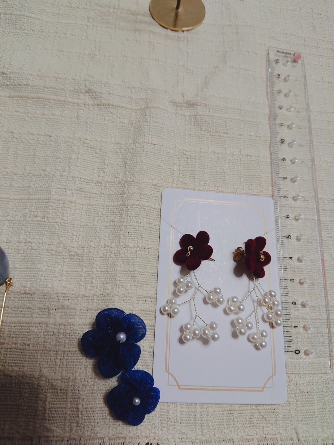 赤いお花とパールが可愛い小枝ピアスです☆ミ