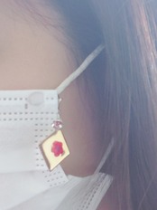 取り外せるハンドメイドヘアゴム(マスクチャーム) 押し花 赤 フラワー No70