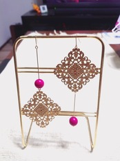 ピンクのビーズとゴールドの大きいひし形チャームデザインが特徴です☆ミ