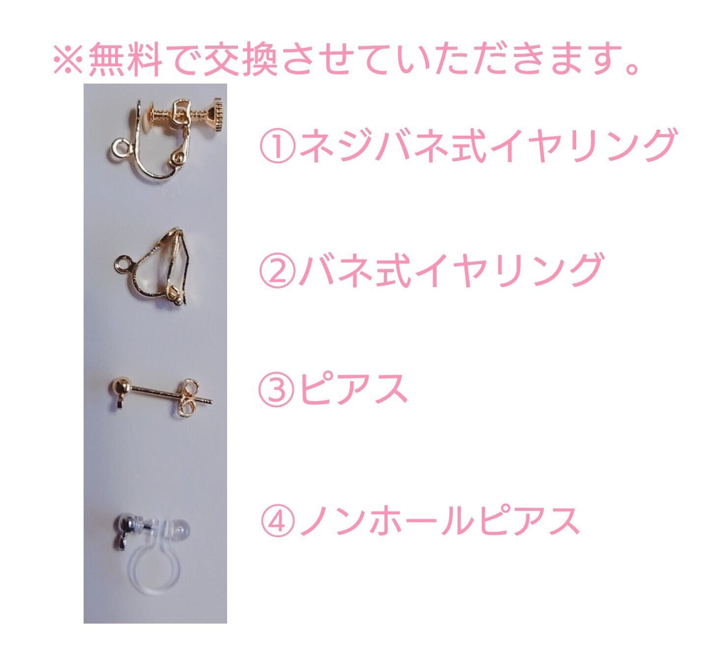 ※無料で変更できますので、変更をご希望の方はコメントにてお申し付け下さい。変更されない場合はフックピアスでのお届けとなります(^^)