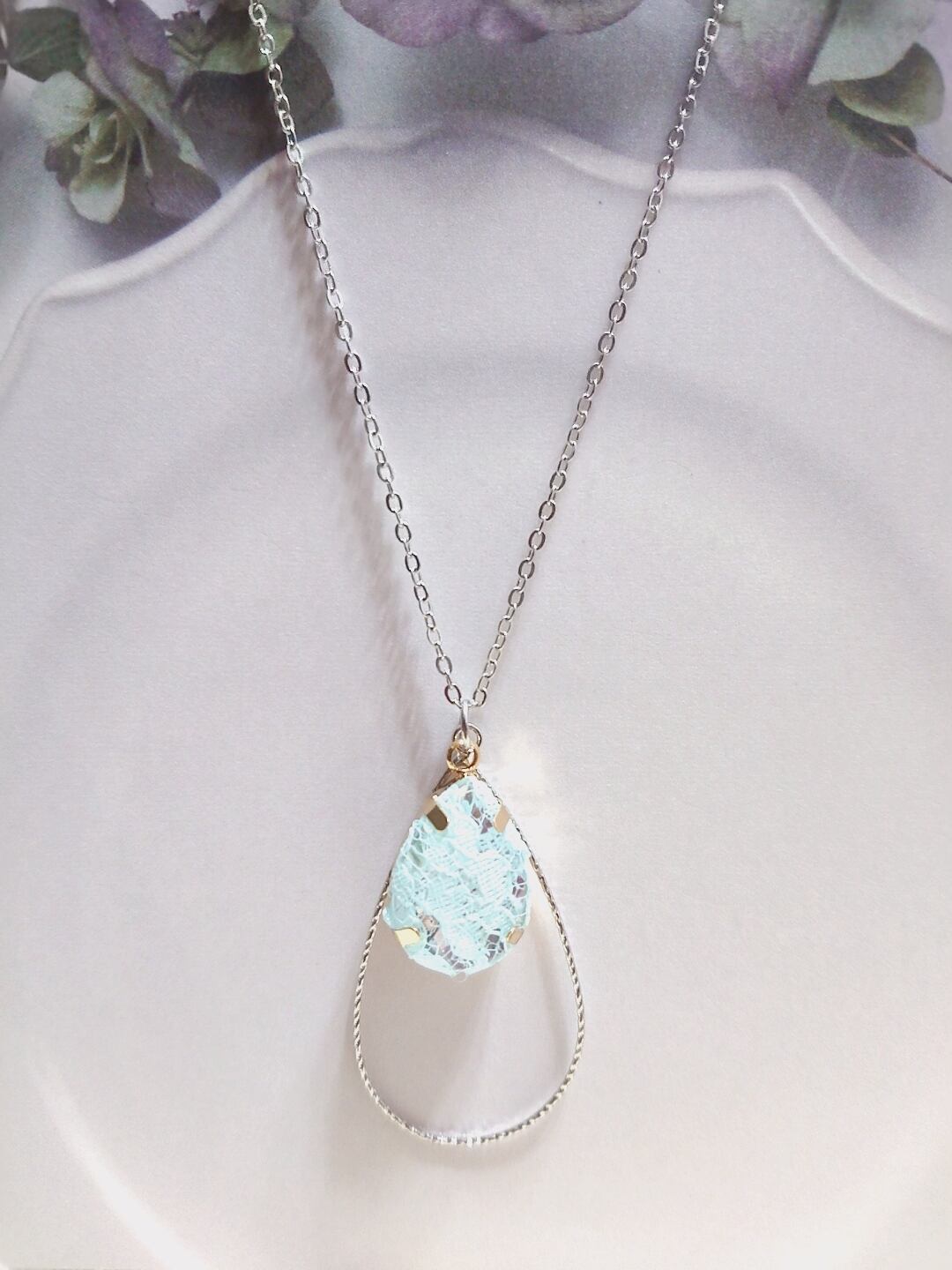 可愛い ハンドメイドネックレス雫 レース 水色 しずくNo108