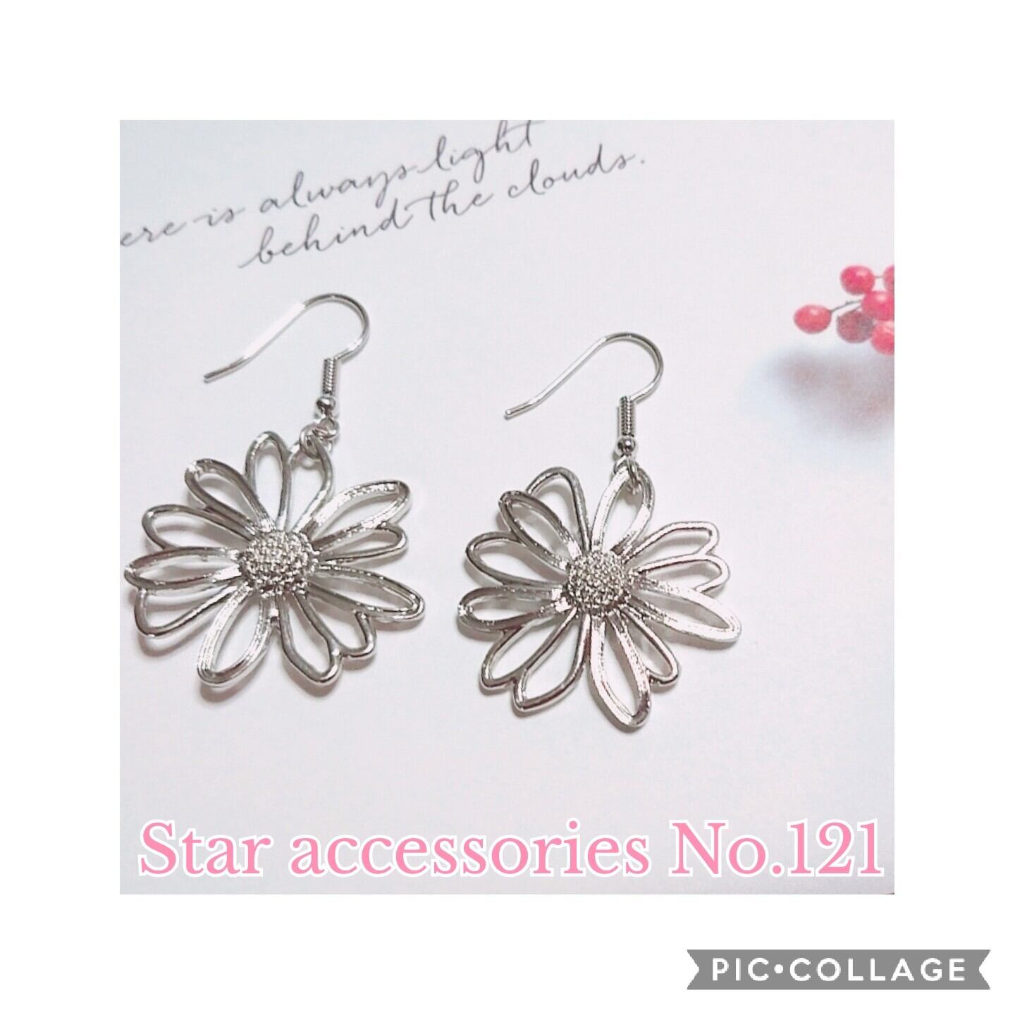 ハンドメイドピアス(イヤリング) フラワー シルバー お花 可愛いNo.121