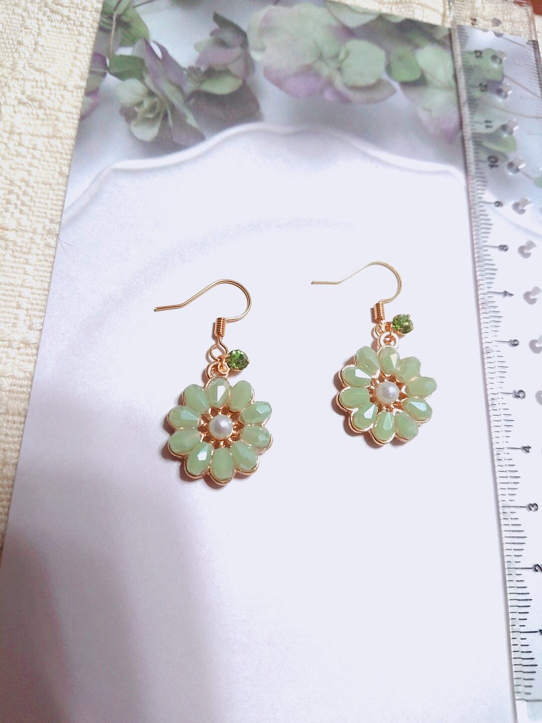 ハンドメイドピアス(イヤリング)No209 フラワー エメラルドグリーン お花