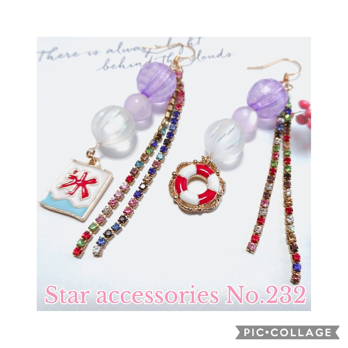 夏らしいパープル・ピンク・透明ビーズとカラフルなストーンチェーンがゆらゆらゆれてキラキラの夏らしいキュートなデザインです☆ミ赤い浮き輪がワンポイント☆ミ