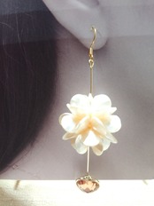 大きいフラワーパールとハートのクリスタルチャームが特徴です☆ミキラキラしていて気品あふれるピアスです☆ミ