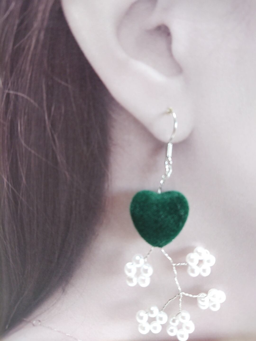 人気のパールのお花とハートのチャームがとっても可愛いです☆ミハートはフロッキー素材でこれからの季節にも◯です♪