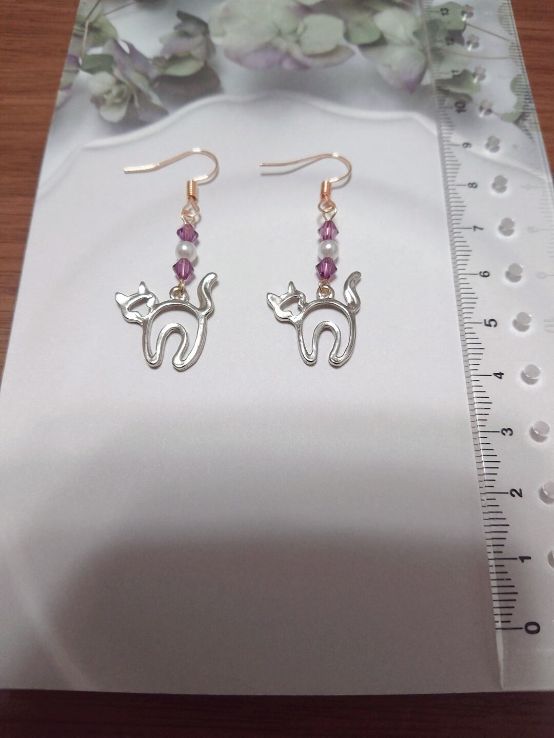 パープルのガラスビーズとねこちゃんのチャームがとっても可愛いです(^^)
