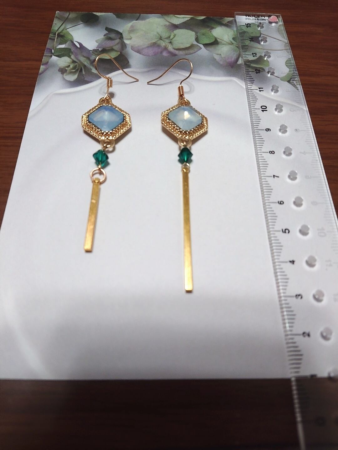 耳元にワンポイントのクリスタルチャームとエメラルドグリーンのSWAROVSKIビーズがキラキラゆらゆら揺れる大人可愛いデザインです☆ミ