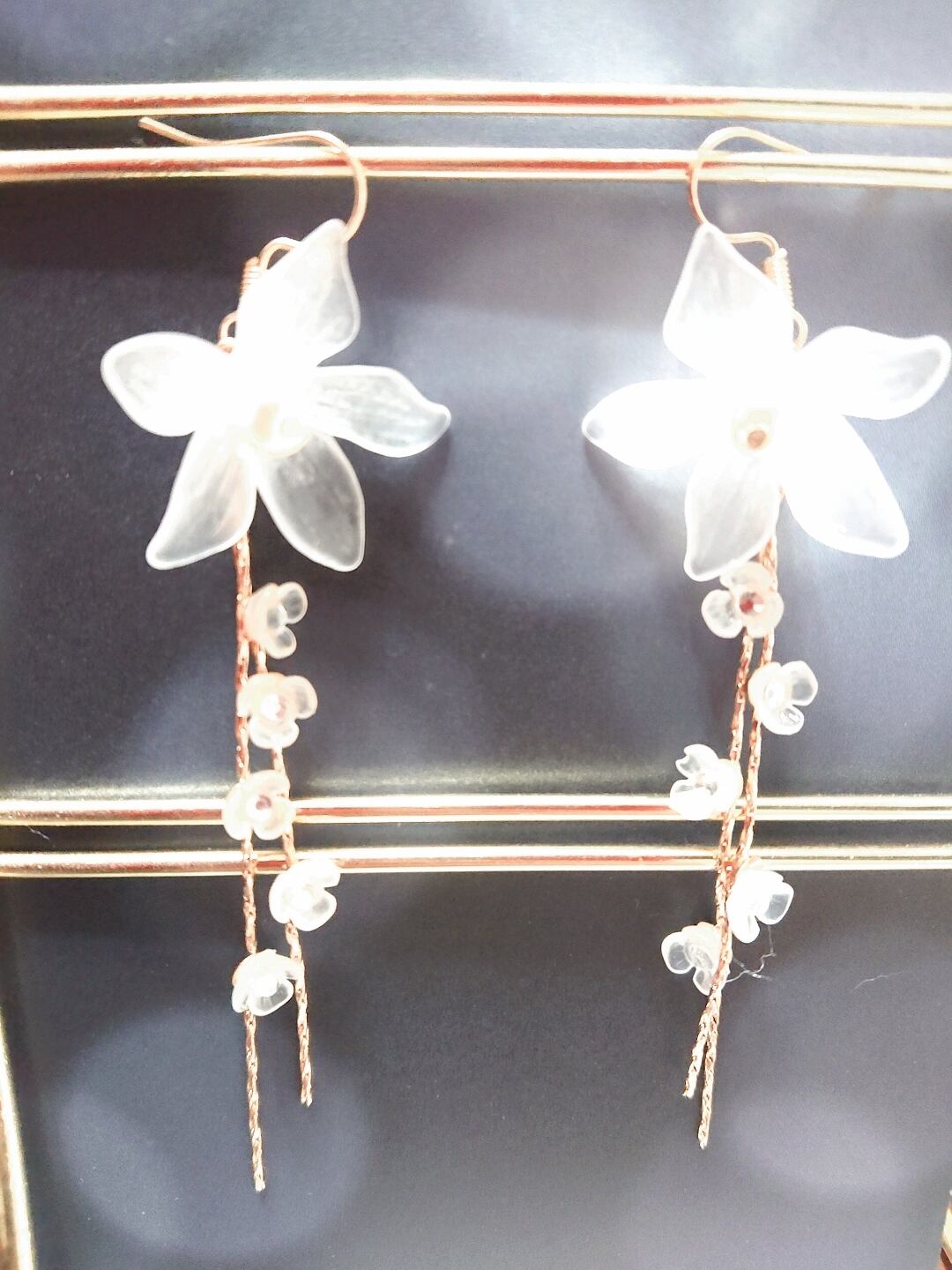 耳元にワンポイントのお花のチャームとチェーンがキラキラゆらゆら揺れる大人可愛いデザインです☆ミ