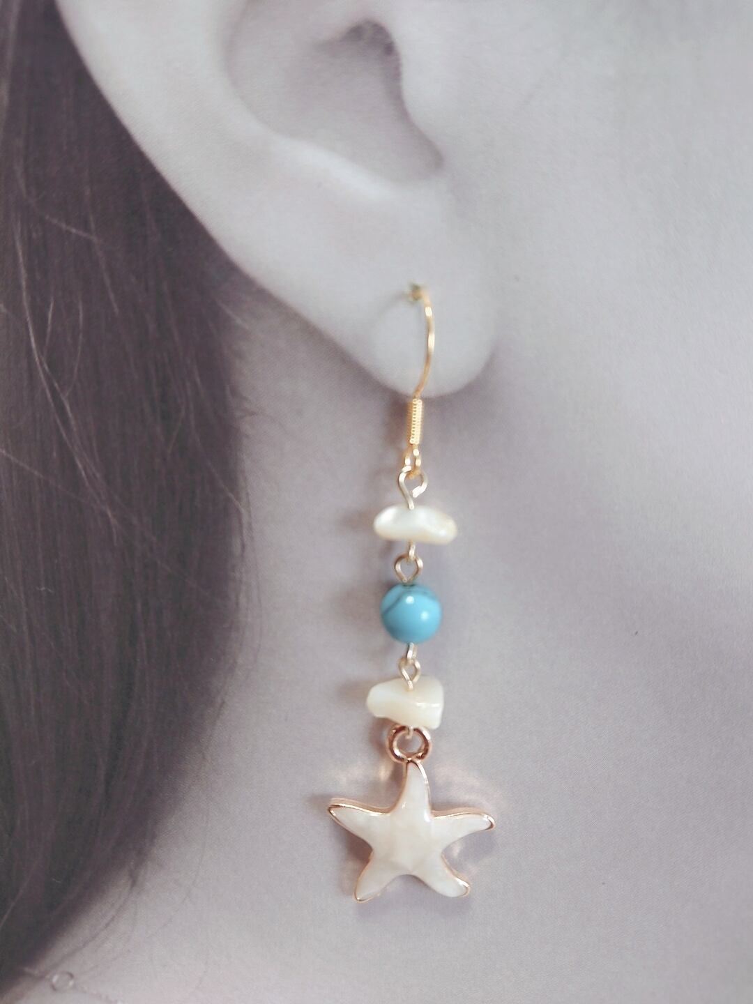 ターコイズの天然石ビーズとシェルビーズがゆらゆらゆれるデザインです☆ミ