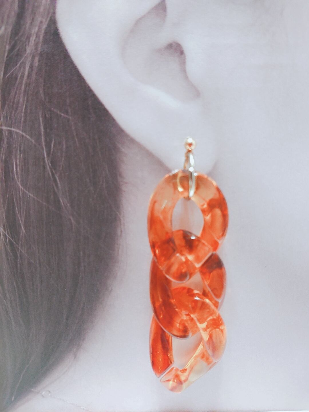 べっこうビーズをチェーン風に作成しました♪大人っぽく夏らしいデザインです☆ミ