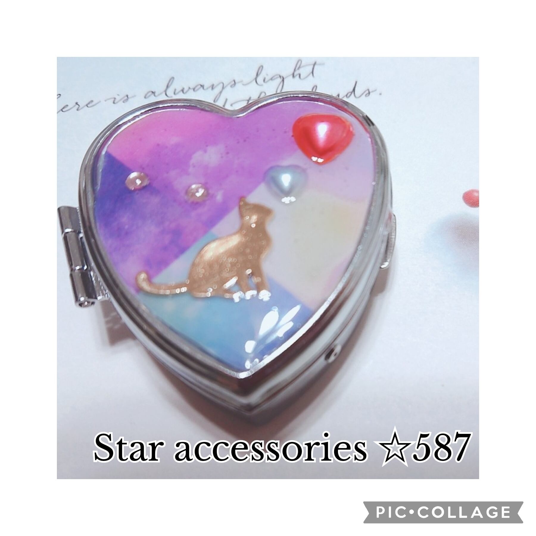 レジンで作成したねこちゃんとハートがとっても可愛いです(^^)