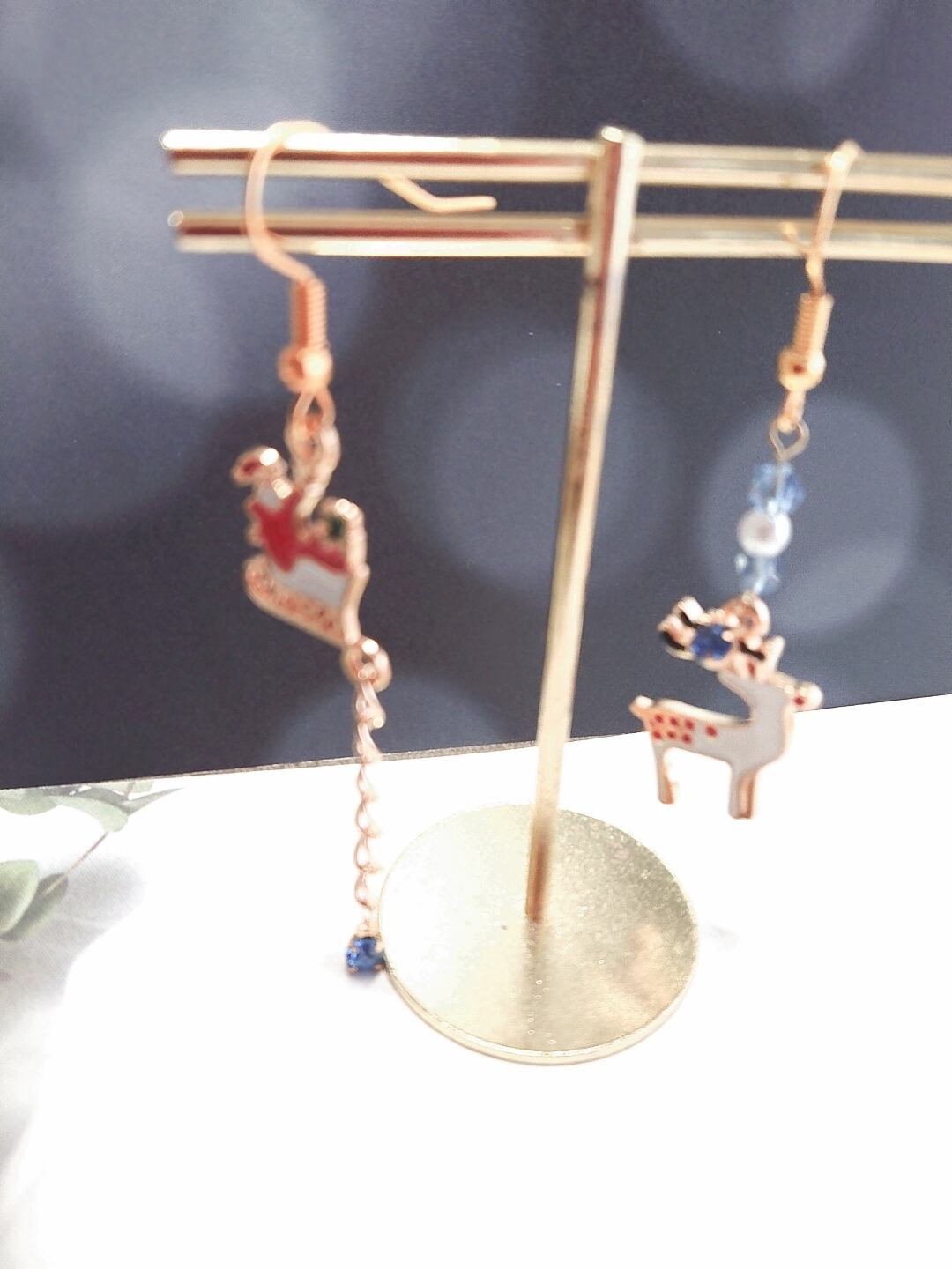 サンタクロースとトナカイのX'masチャームとガラスビーズが可愛いです☆ミ