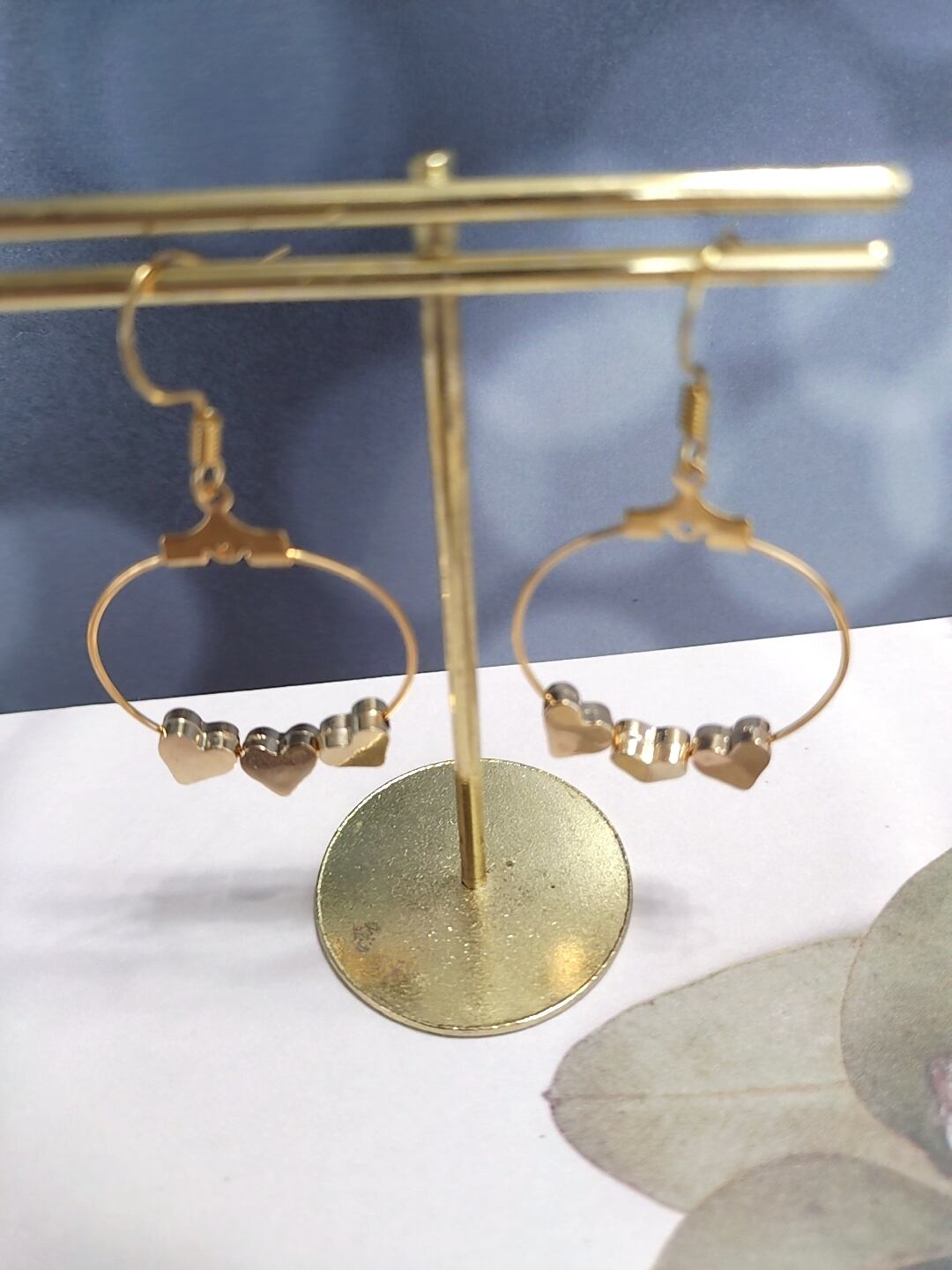 ハート型のチャームが特徴のゴールドフープピアスでとっても可愛いです♡