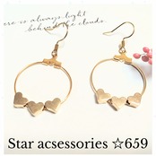 ハート型チャーム ゴールドフープピアス No659